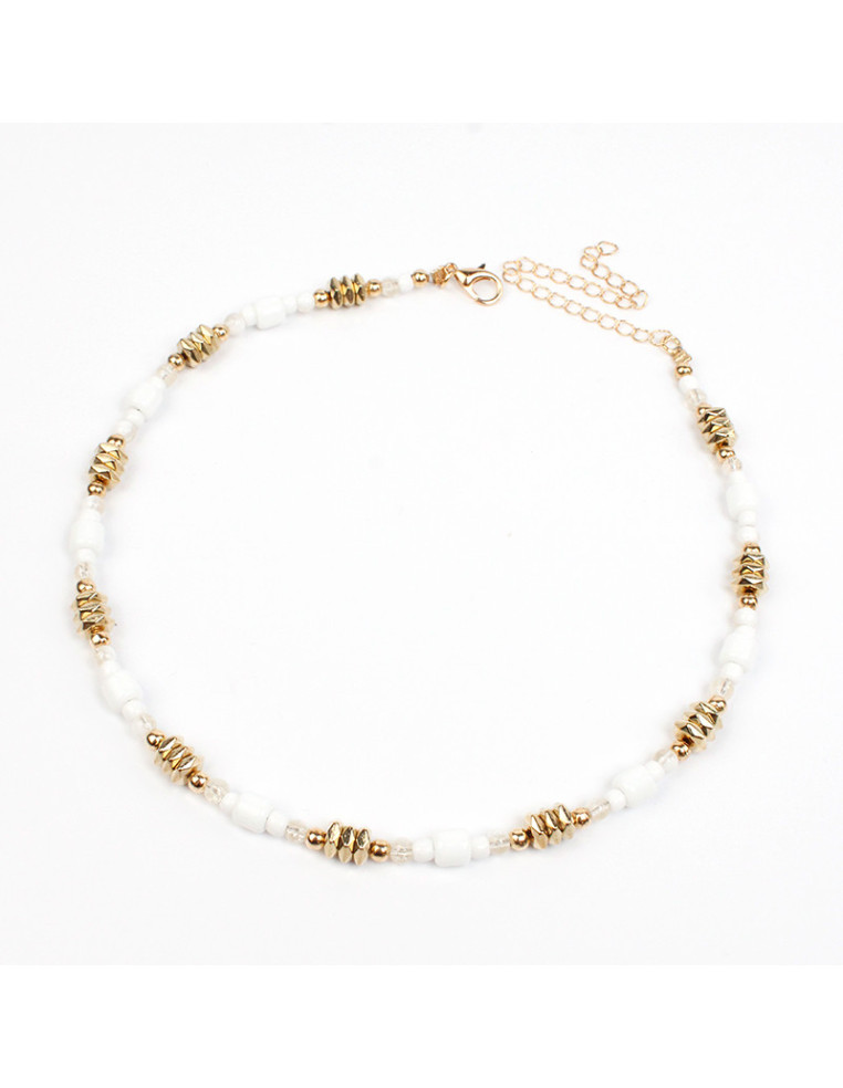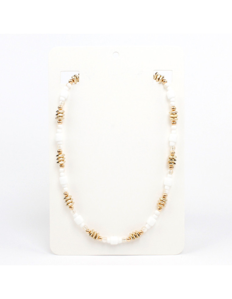 Collar flexible de lenga, con cuentas de vidrio, mostacillas, bolitas de vidrio y pasantes orgánicos de CCB.