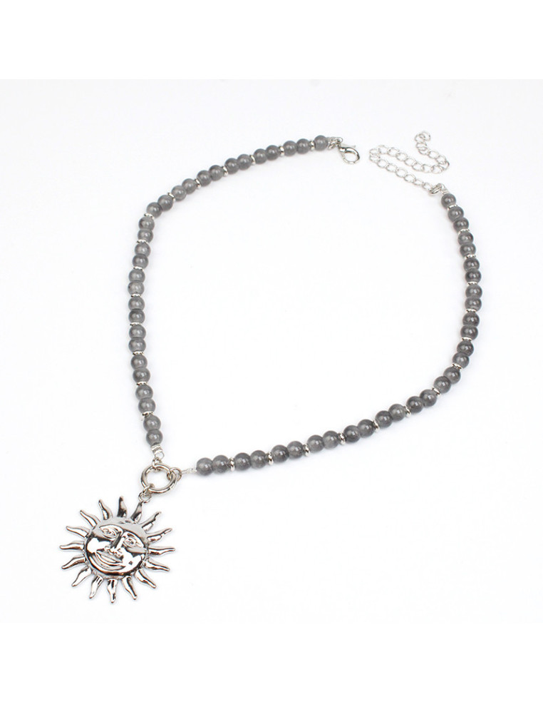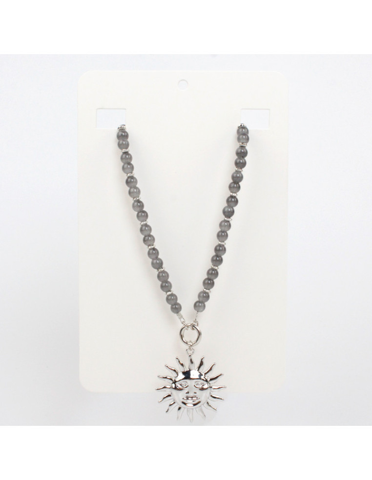 Collar Flexible de lenga, con bolitas de vidrio, separadores de CCB y dije de fundición con forma de sol.