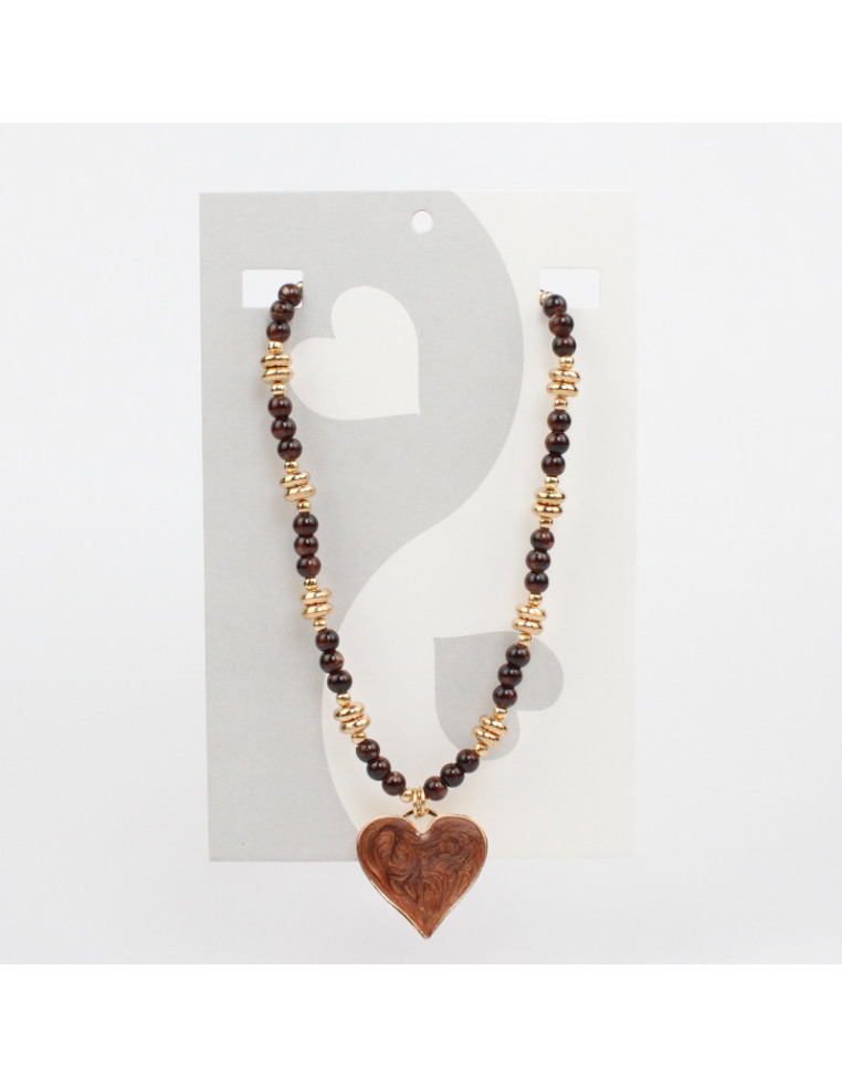 Collar flexible de lenga, con bolitas de vidrio,pasantes de CCB y dije de fundición pintado a mano.