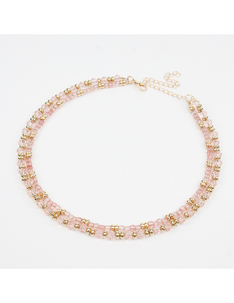 Collar flexible doble de lenga, con rocas de cristal, mostacillas y pasantes de CCB.