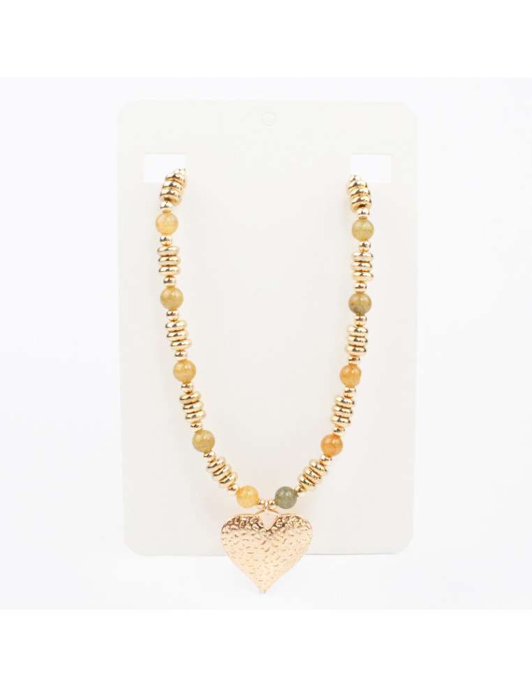 Collar flexible de lenga con cuentas de vidrio, y pasantes de CCB dorados.