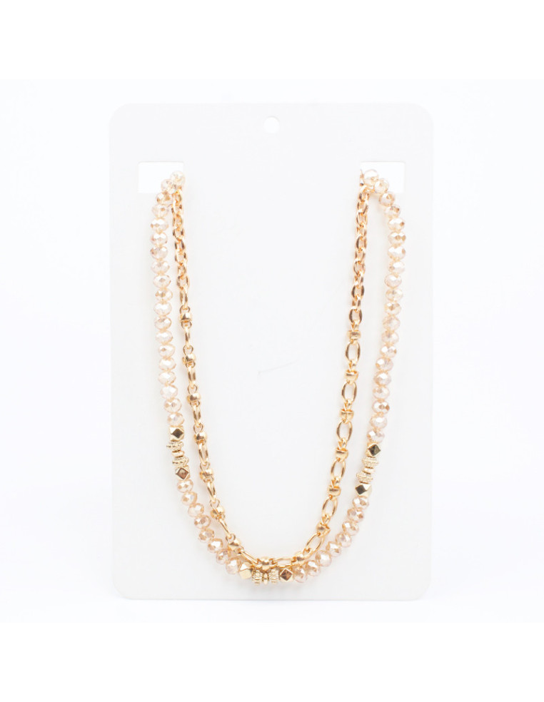 Collar de cadenas con eslabones en forma de flor combinado con lenga, con rocas de cristal y pasantes de CCB.