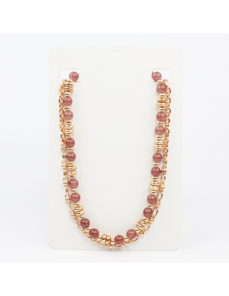 Set de dos collares, uno de cadenas con eslabones de diseño combinado con lenga, con bolitas de vidrio y pasantes de CCB.