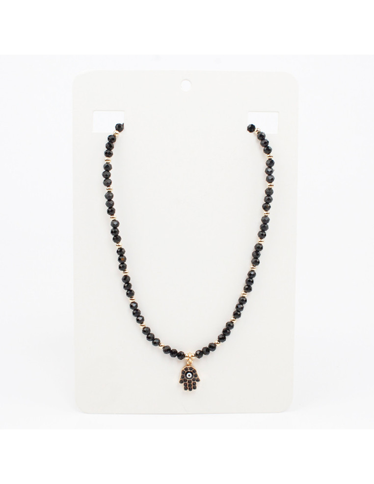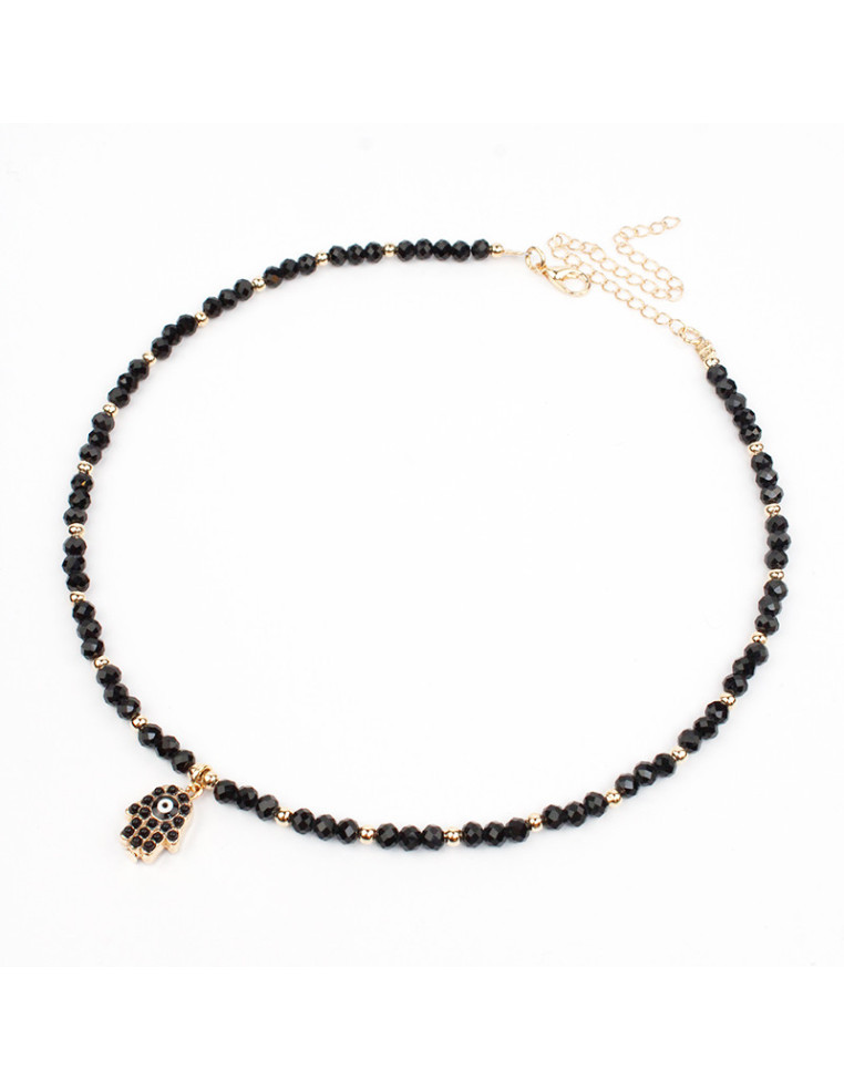 Collar flexible de lenga, con rocas de cristal pasantes de CCB y dije de fundición con forma de mano hamsa.