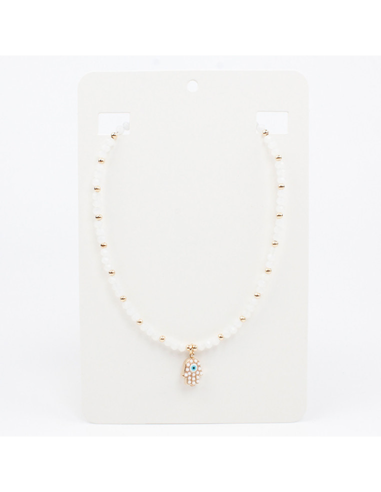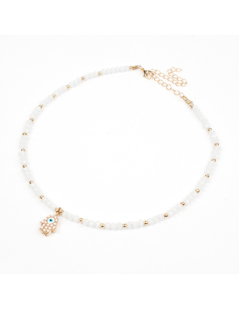 Collar flexible de lenga, con rocas de cristal pasantes de CCB y dije de fundición con forma de mano hamsa.