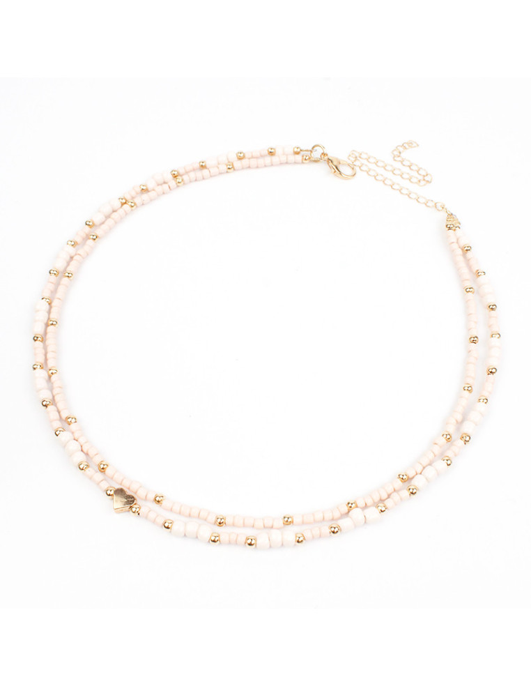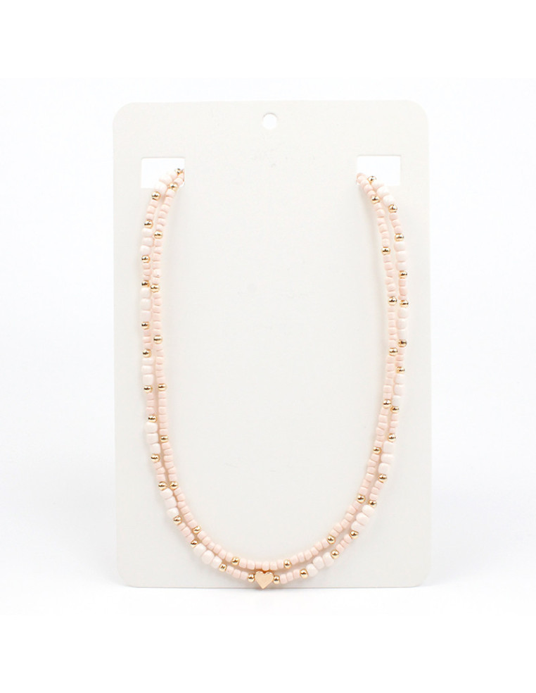 Collar flexible de lenga doble, con mostacillas, pasantes de CCB dorados y dije con forma de corazón.