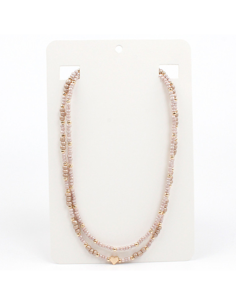 Collar flexible de lenga doble, con mostacillas, pasantes de CCB dorados y dije con forma de corazón.