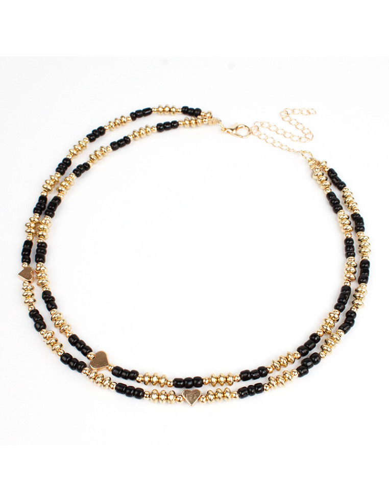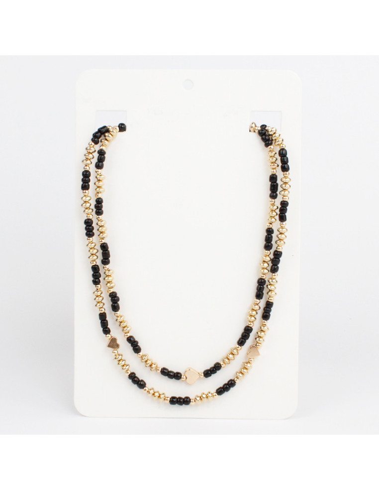 Collar flexible de lenga, con mostacillas, pasantes de CCB y dijes pasantes con forma de corazón.