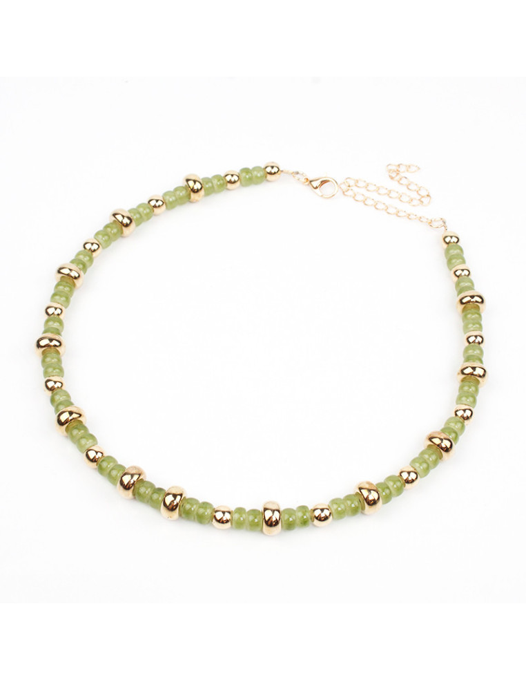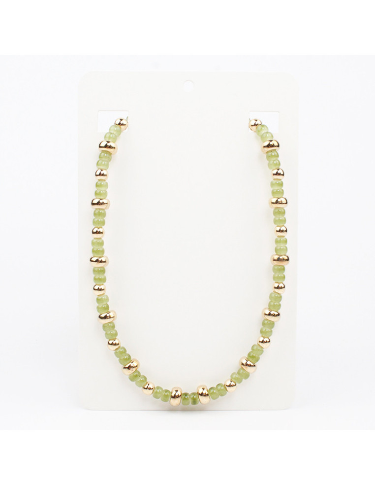 Collar flexible de lenga, con cuentas de vidrio, bolitas y pasantes de CCB dorados.