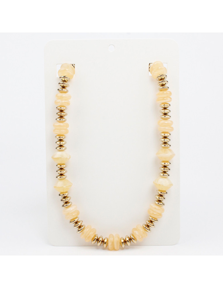 Collar flexible de lenga, con cuentas de acrílico, y pasantes de CCB dorados.