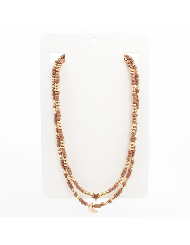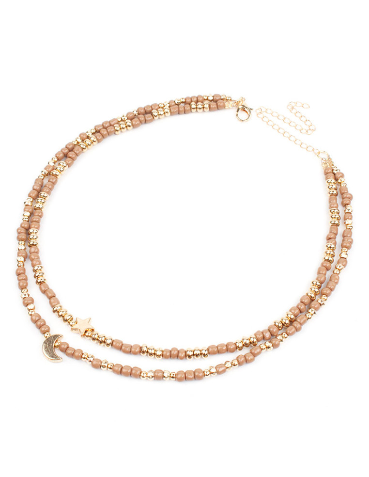 Collar flexible de lenga doble con mostacillas, pasantes de CCB y dijes dorados.