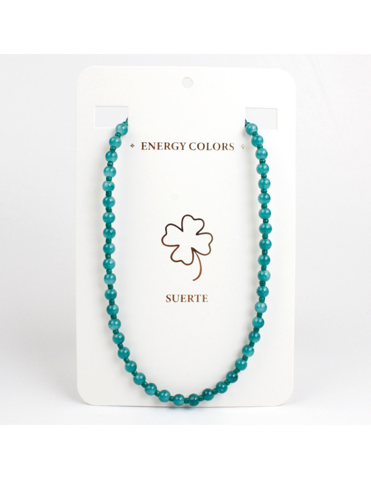 Collar flexible de lenga, con bolitas de vidrio energéticas y mostacillas.Medidas: 37cm de largo, ajustable con cadena de enganche de 10cm.