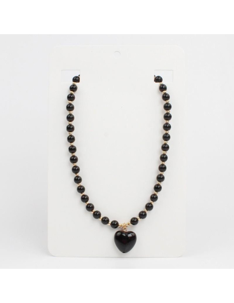 Collar flexible de lenga con bolitas de vidrio, pasantes de CCB y dije de vidrio con forma de corazón.Medidas: 36cm de largo ajustable con cadena de enganche de 10cm.