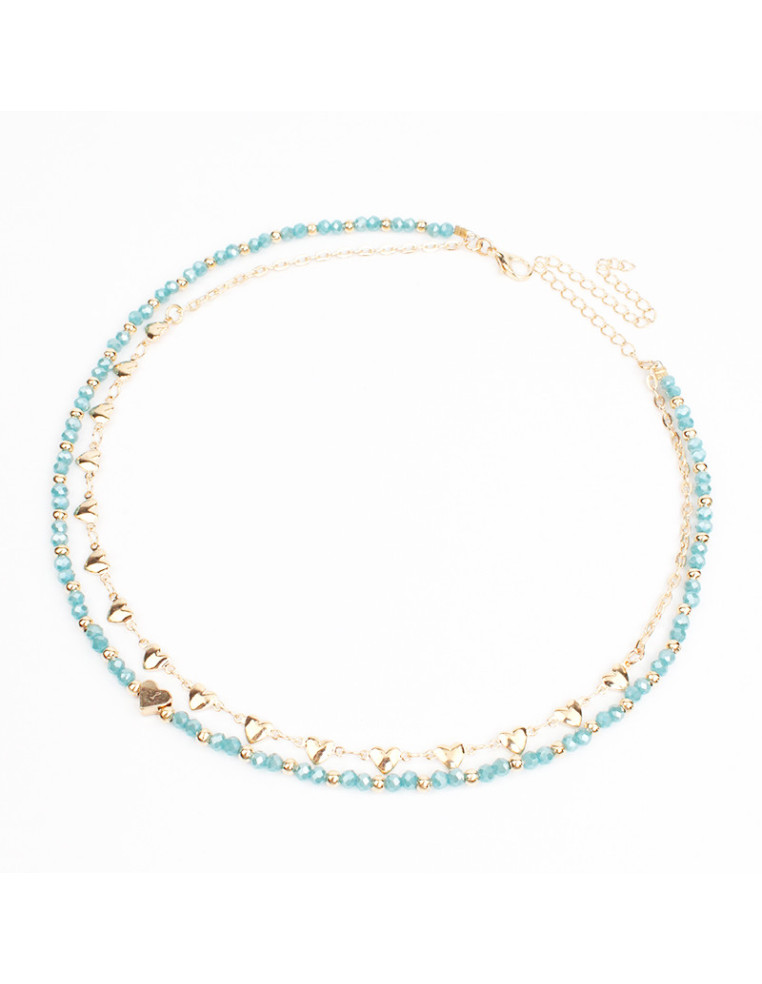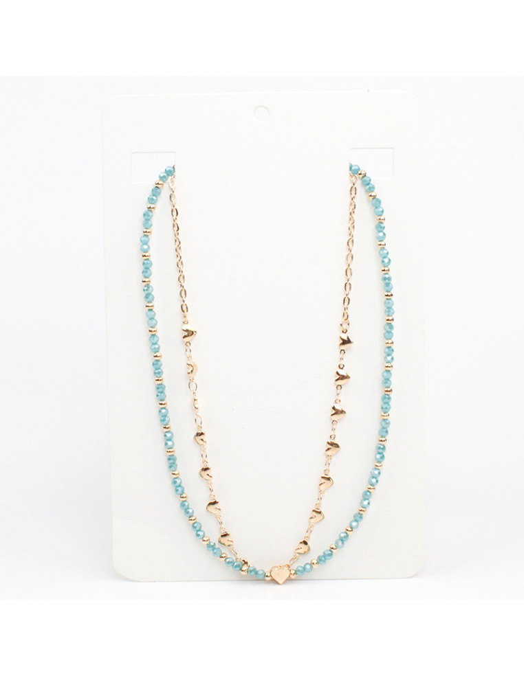 Collar flexible de lenga con rocas de cristal, pasantes de CCB y dije de fundición, con cadena de eslabones en forma de corazón.