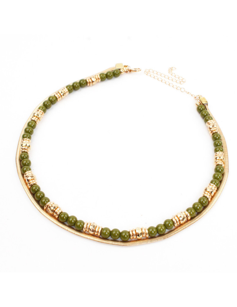 Collar flexible de lenga con bolitas de vidrio, pasantes de CCB combinado con cadena.