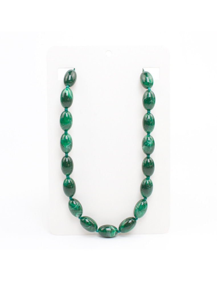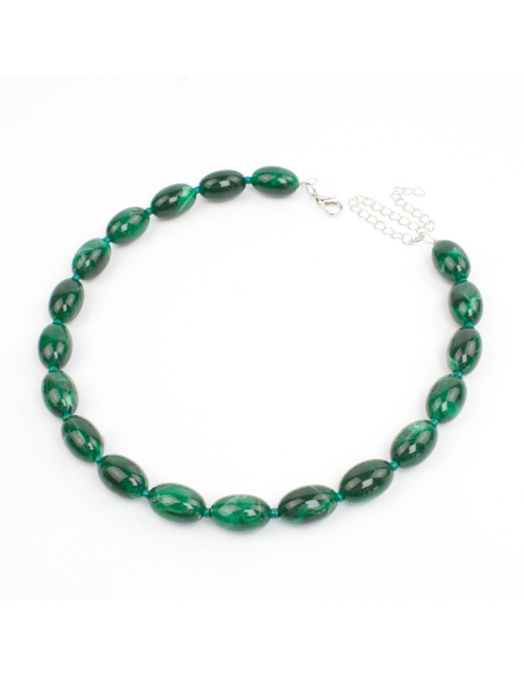 Collar flexible de lenga, con cuentas de acrílico marmoladas y mostacillas. Medidas: 39cm de largo, ajustable con cadena de enganche de 10cm