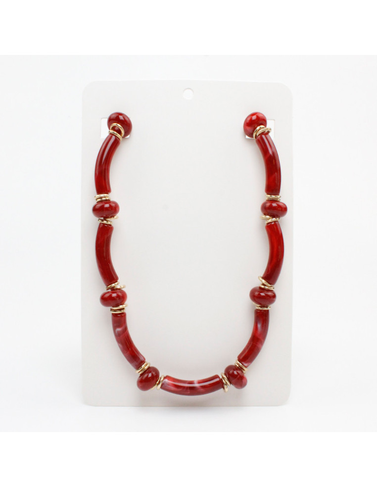 Collar flexible de lenga, con cuentas y tubos de acrílico combinados con pasantes de CCB dorados.