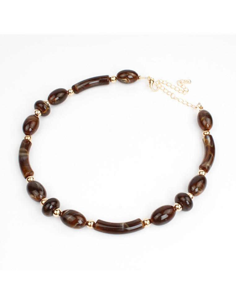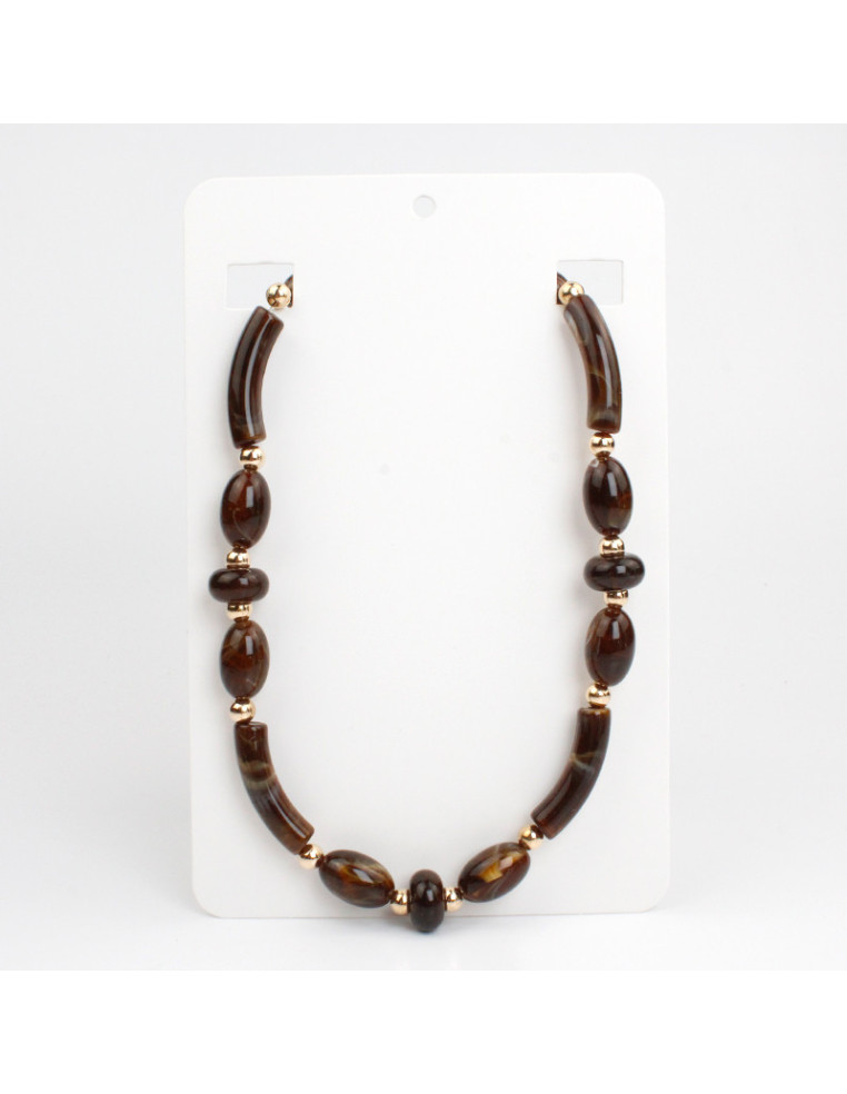 Collar flexible de lenga intervenido con dijes exclusivos de acrílico y cuentas de hierro.