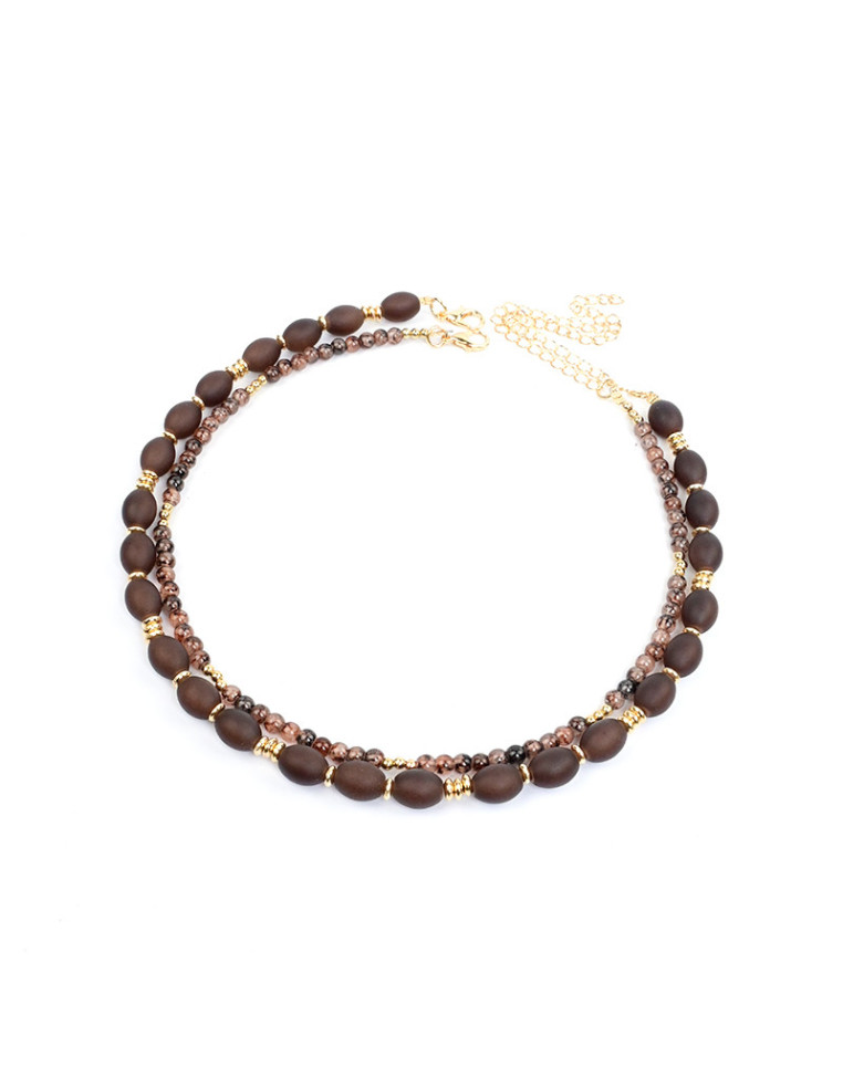 Collar flexible de lenga, con cuentas y bolitas de vidrio exclusivas. Medidas 35, 37 cm de largo, ajustable con cadena de enganche de 10cm