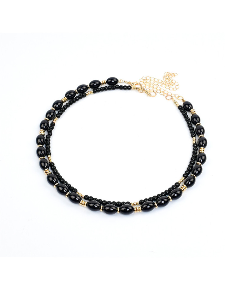Collar flexible de lenga, con cuentas y bolitas de vidrio exclusivas. Medidas  35, 37 cm de largo, ajustable con cadena de enganche de 10cm