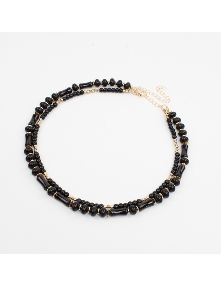 Collar flexible de doble lenga, con cuentas de vidrio, donas de acrílico y pasantes de CCB.