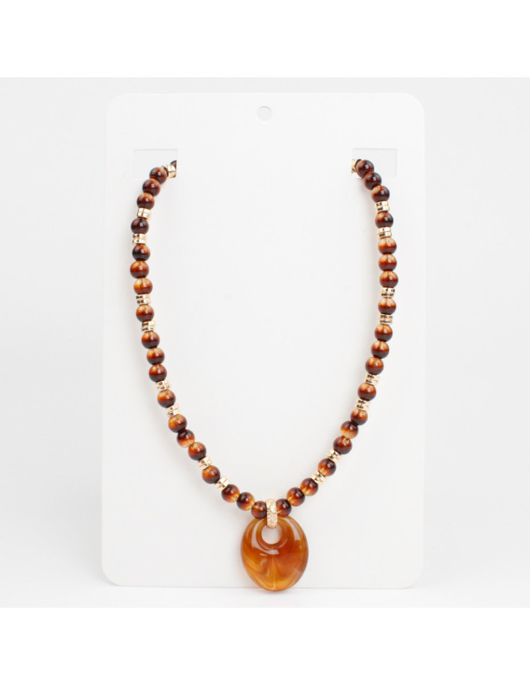 Collar corto de piezas de vidrio con dije exclusivo de acrílico.