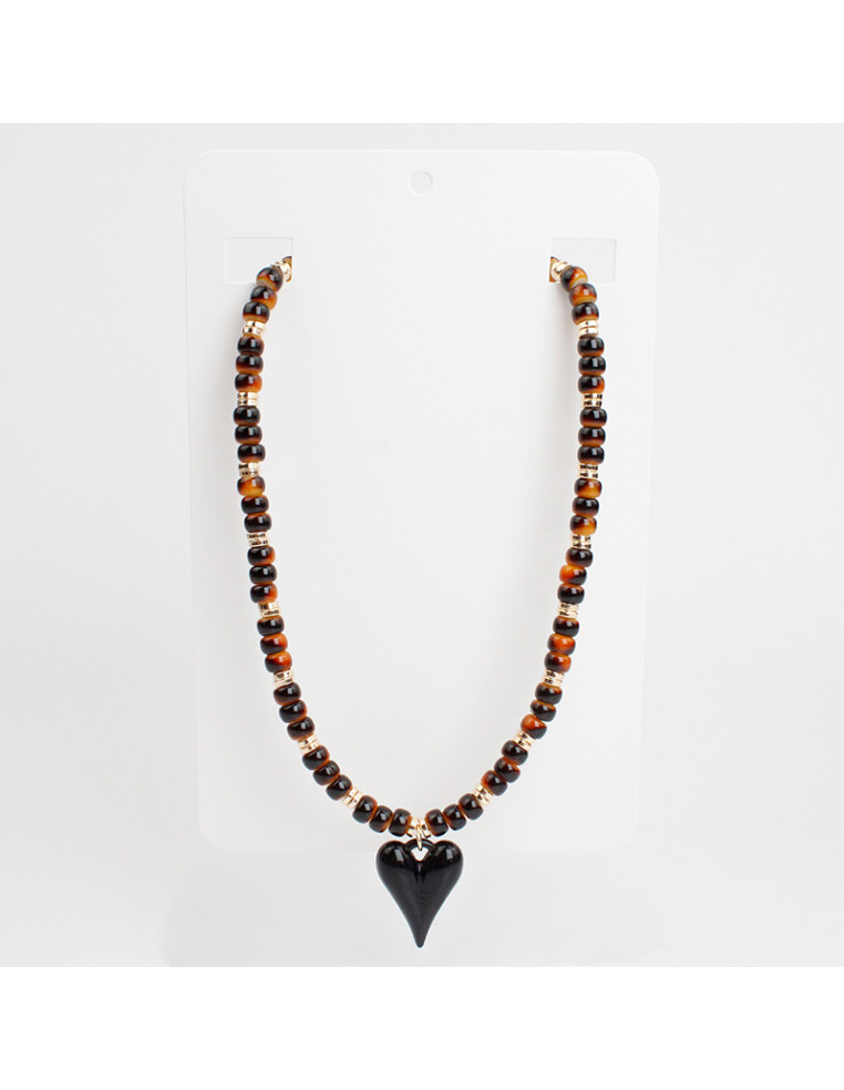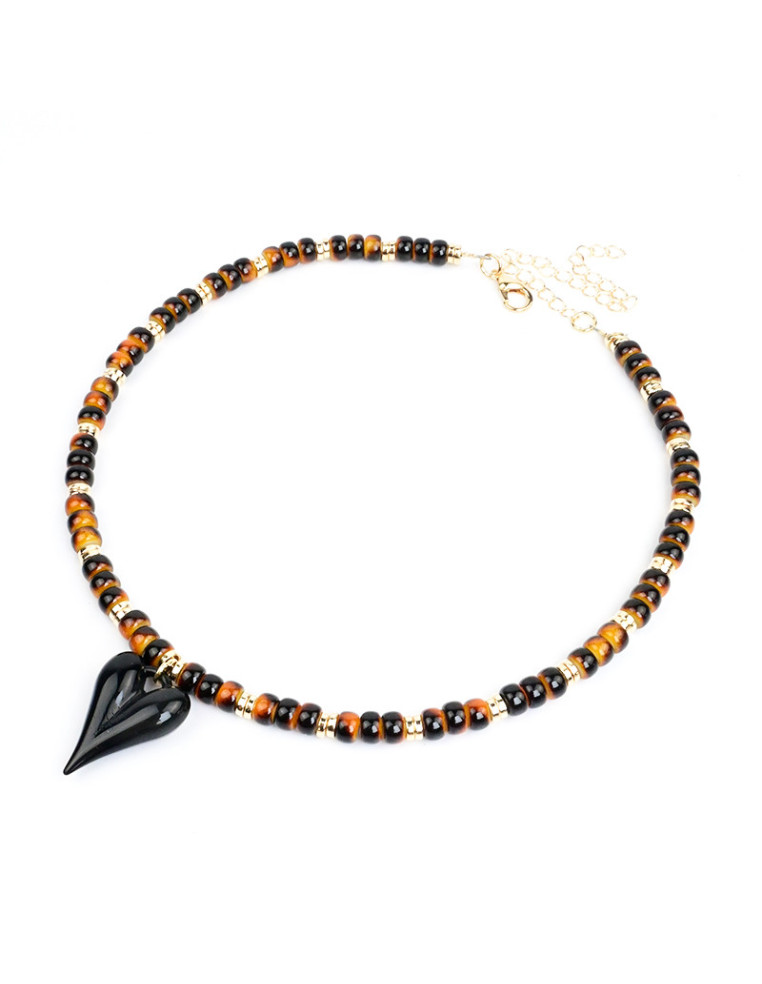 Collar flexible de lenga con cuentas de vidrio, pasantes de CCB dorados y dije con forma de corazón.