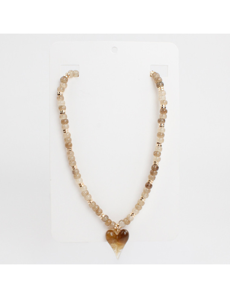 Collar flexible de lenga con cuentas de vidrio, pasantes de CCB dorados y dije con forma de corazón.