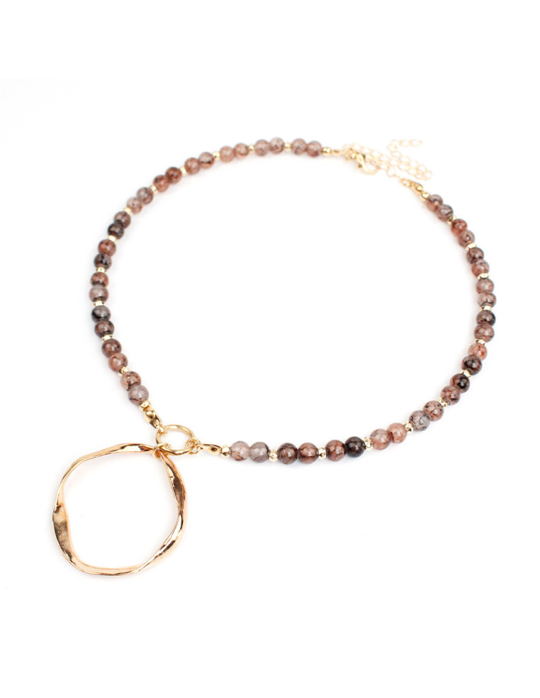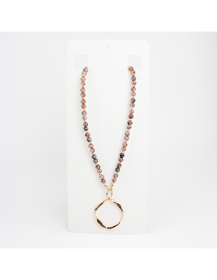 Collar flexible de lenga con bolitas de vidrio y dije de fundición orgánico.