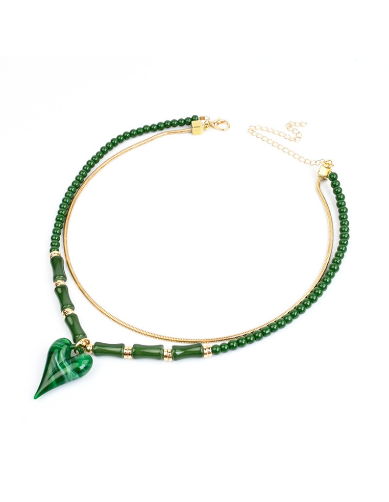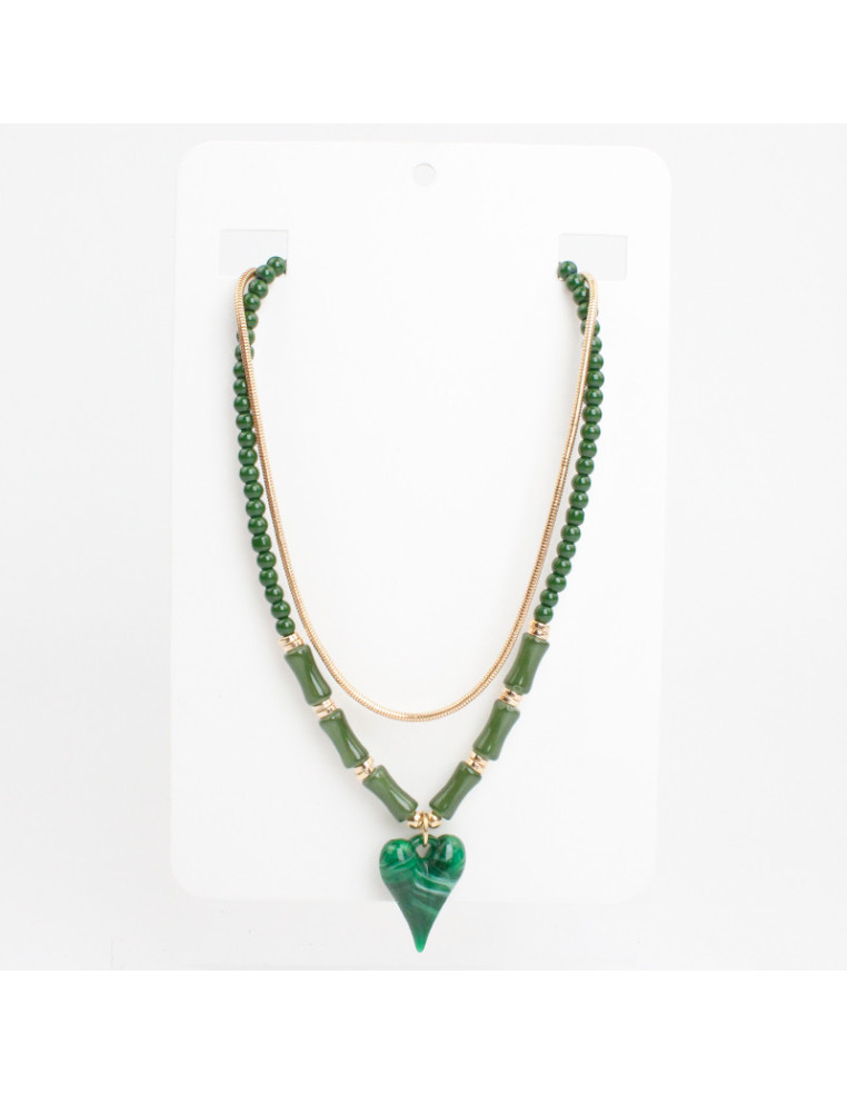 Collar flexible doble, de cuentas de vidrio y dije de acrílico combinado con cadena.