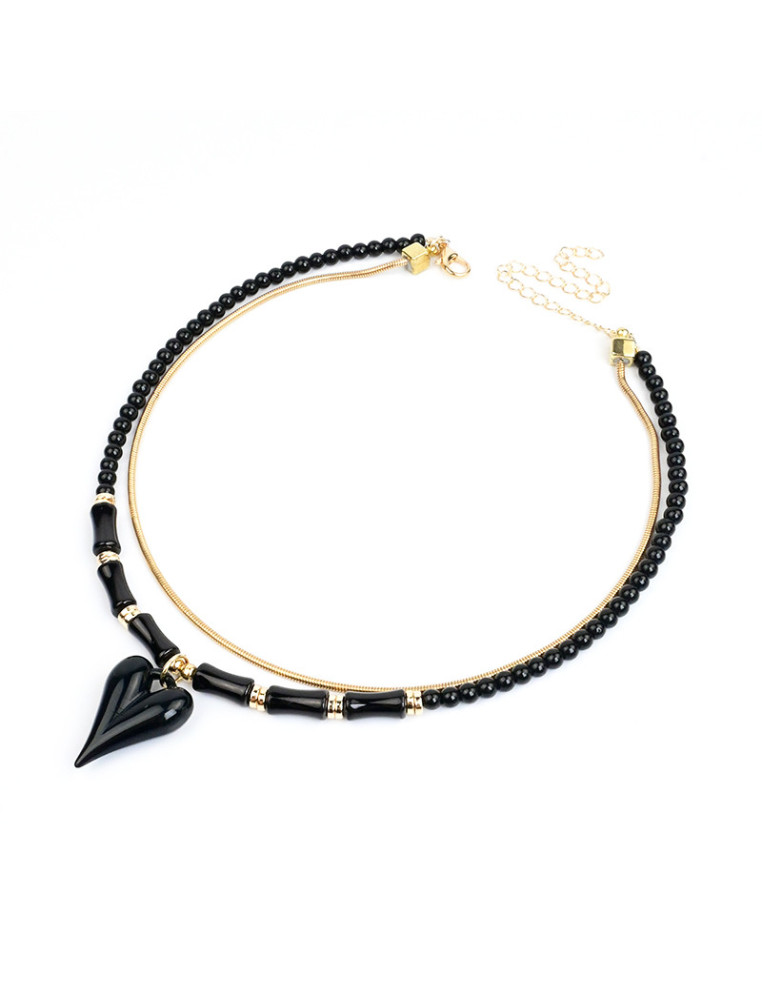 Collar flexible doble, de cuentas de vidrio y dije de acrílico combinado con cadena.