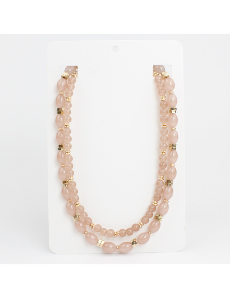Collar de tanza de acero doble con piezas de vidrio. Medida 35, 37 cm mas largo ajustable con cadena de enganche de 10cm.