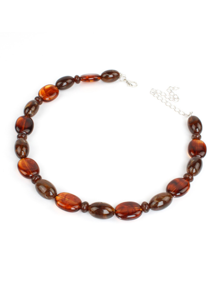 Collar flexible de tanza de acero intervenida con dijes exclusivos de acrílico.