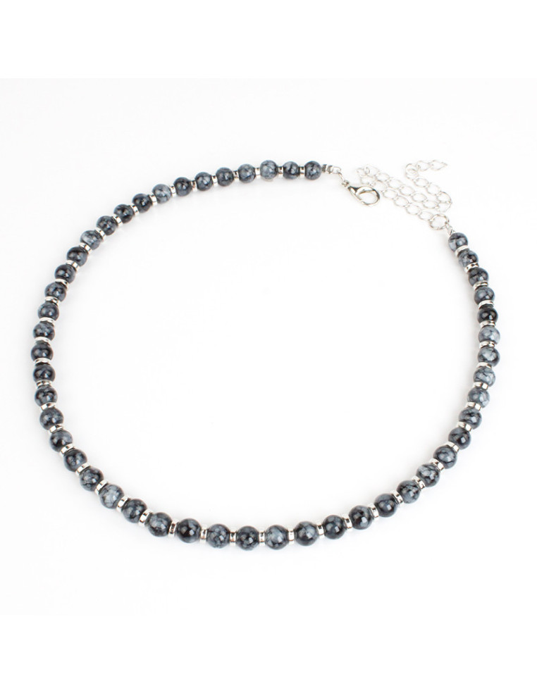 Collar de tanza de acero enehrbado con bolitas de vidrio energéticas y pasantes de CCB níquel.