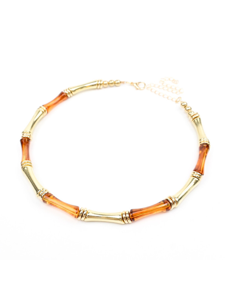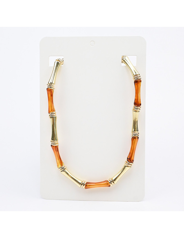 Collar de tanza de acero, enhebrado con cuentas de acrílico marmoladas y pasantes de CCB.