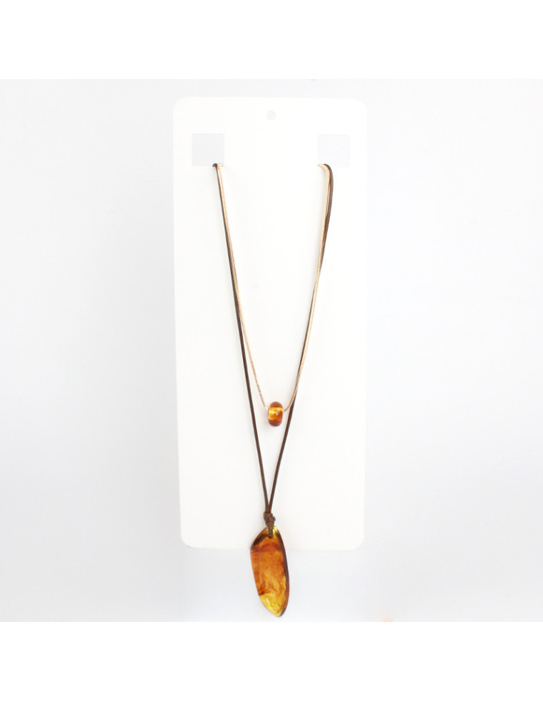 Collar doble de cadena combinado con cordón encerado y dijes de acrílico.