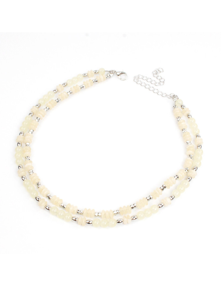 Collar flexible de doble lenga, con bolitas de vidrio, donas de acrílico y pasantes de CCB.
