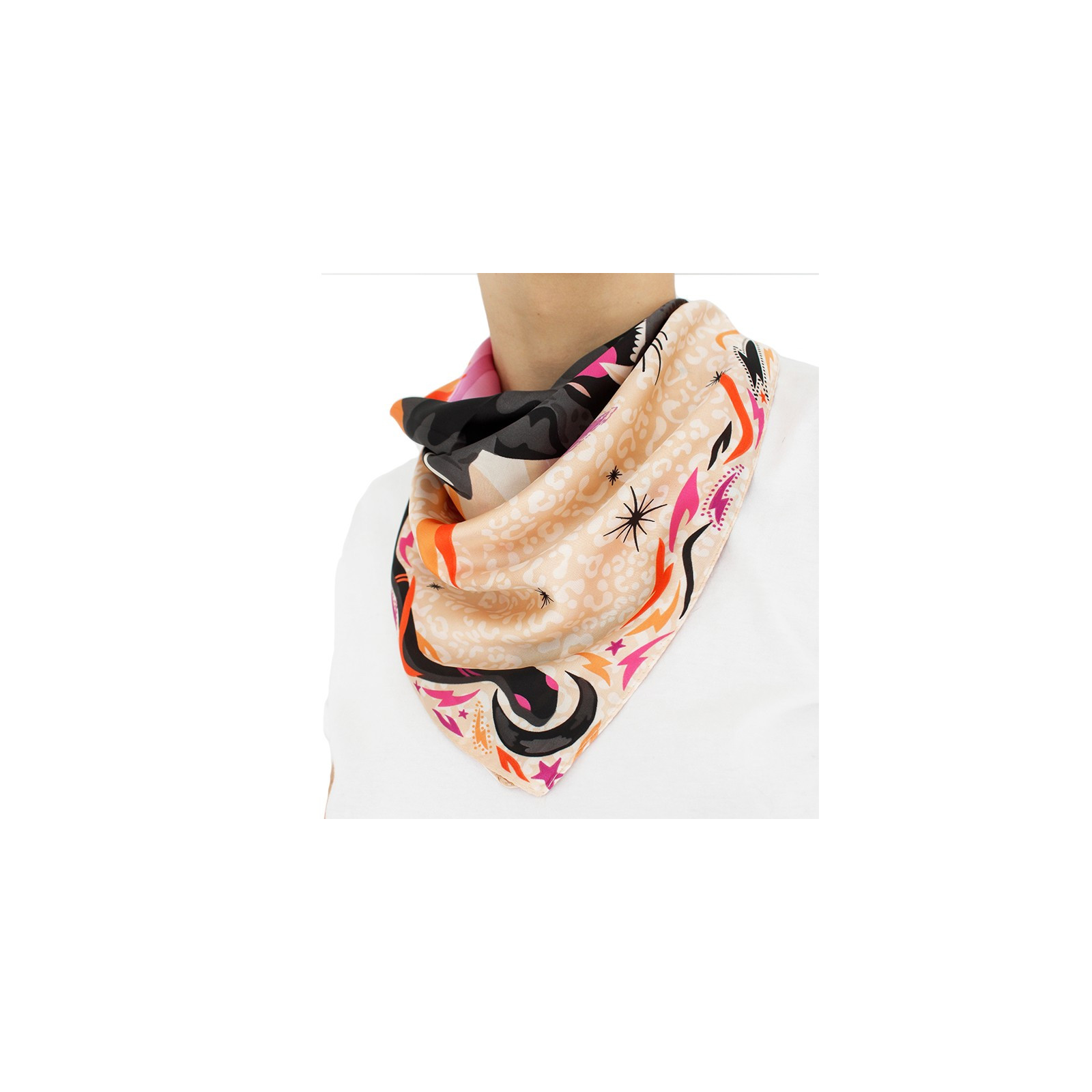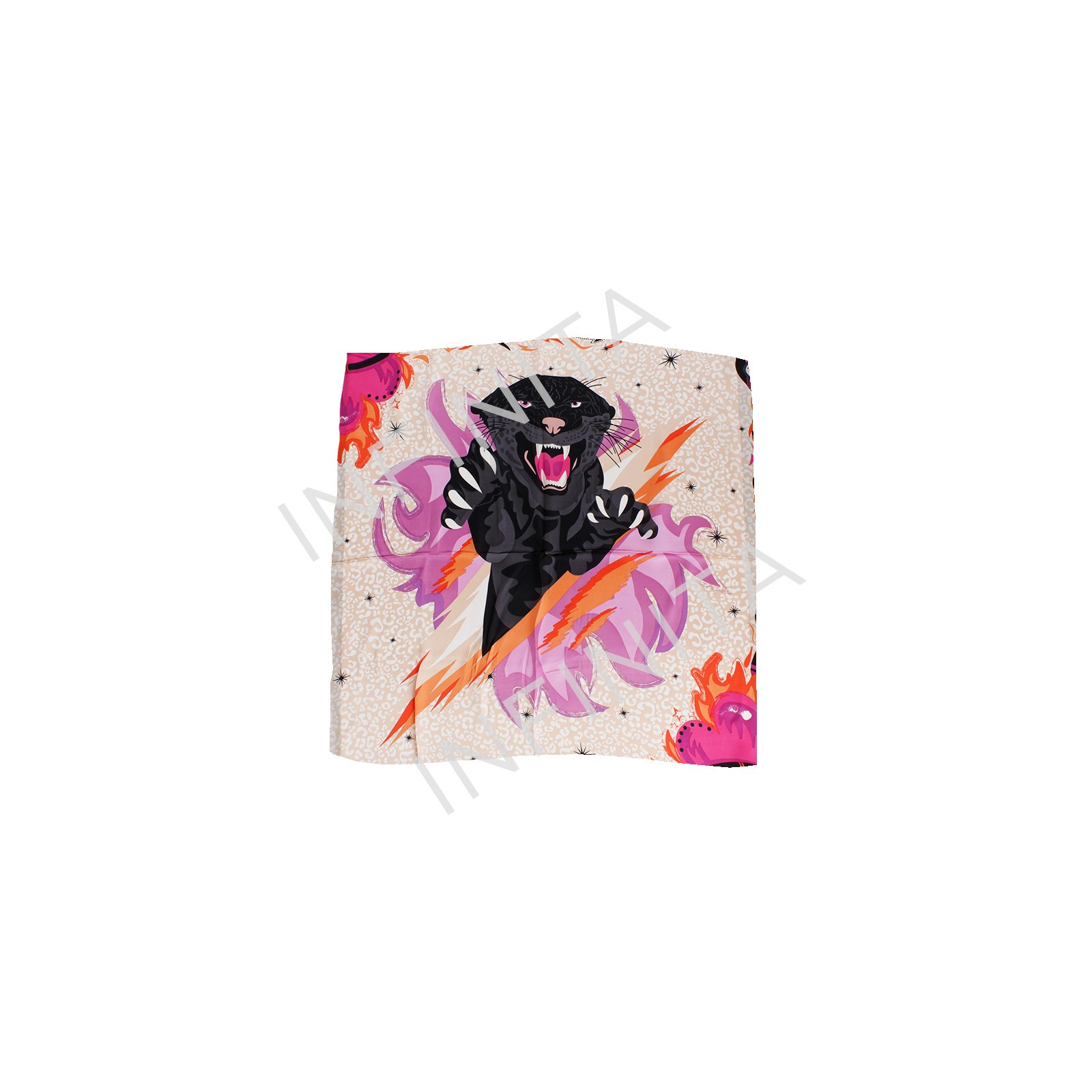 Pañuelo tela tipo seda con diseño de estampa exclusiva Infinita. (Estampado por impresión, ambos lados con dibujo)