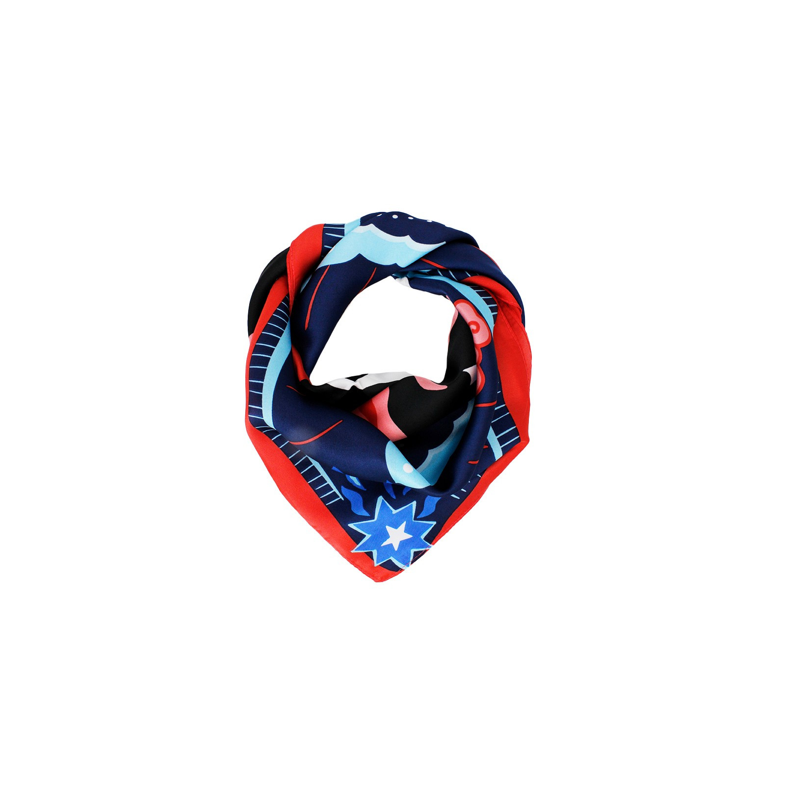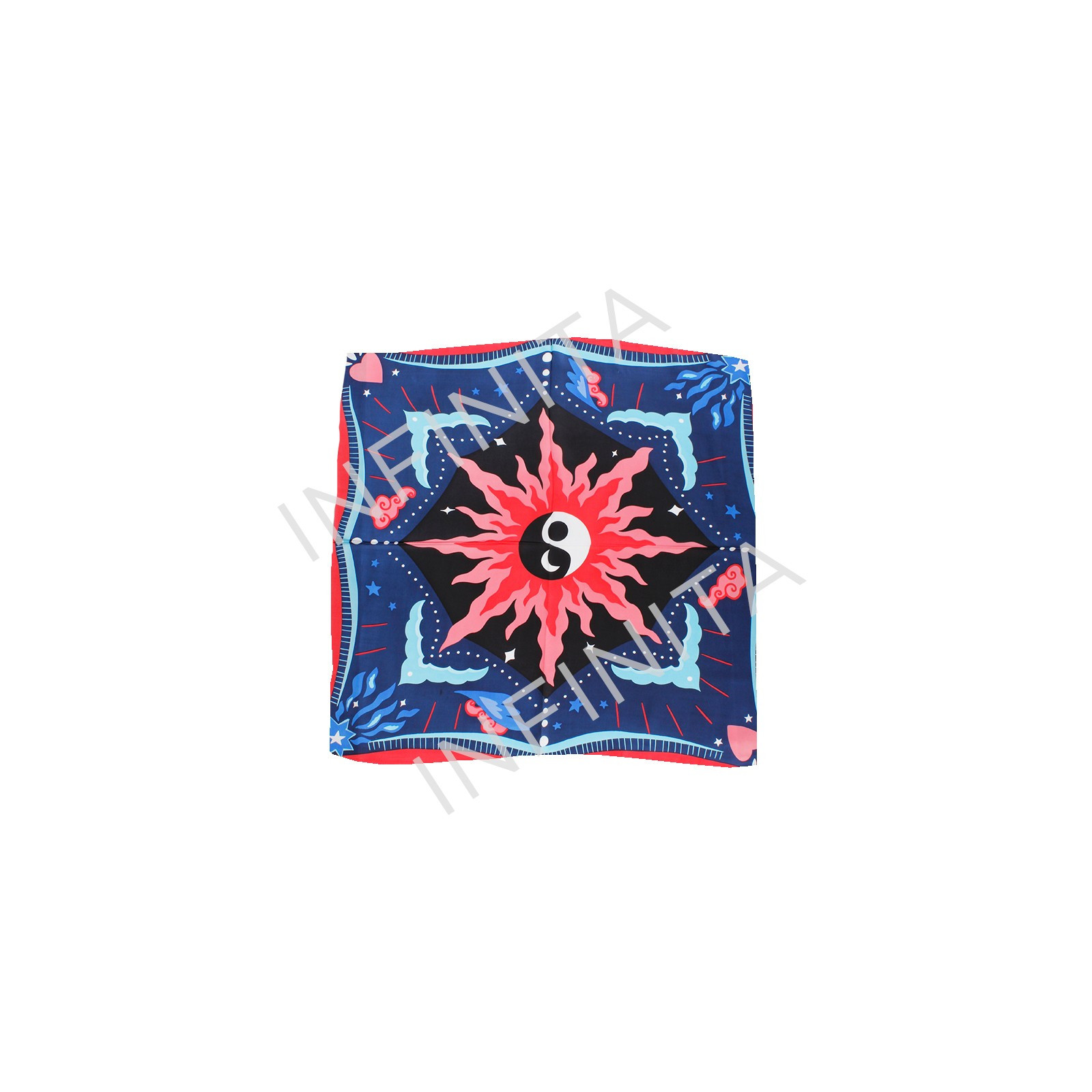 Pañuelo tela tipo seda con diseño de estampa exclusiva Infinita. (Estampado por impresión, ambos lados con dibujo)