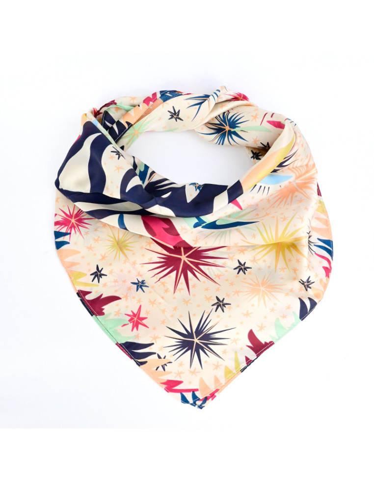 Pañuelo tela tipo seda con diseño de estampa exclusiva Infinita. (Estampado por impresión, ambos lados con dibujo)