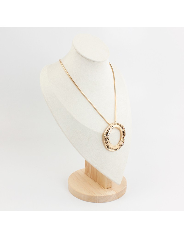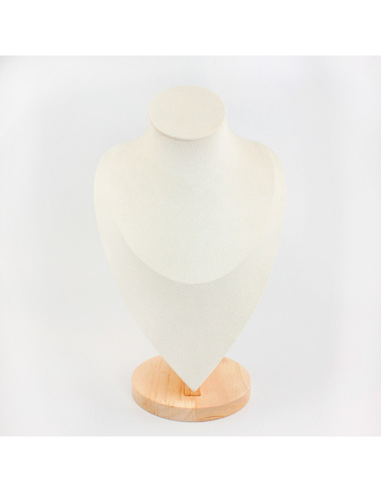 Exhibidor de collares busto grande forrado en tela, con base de madera.