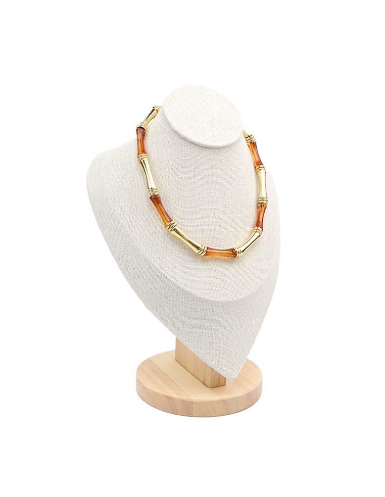Exhibidor de collares busto chico forrado en tela, con base de madera.
