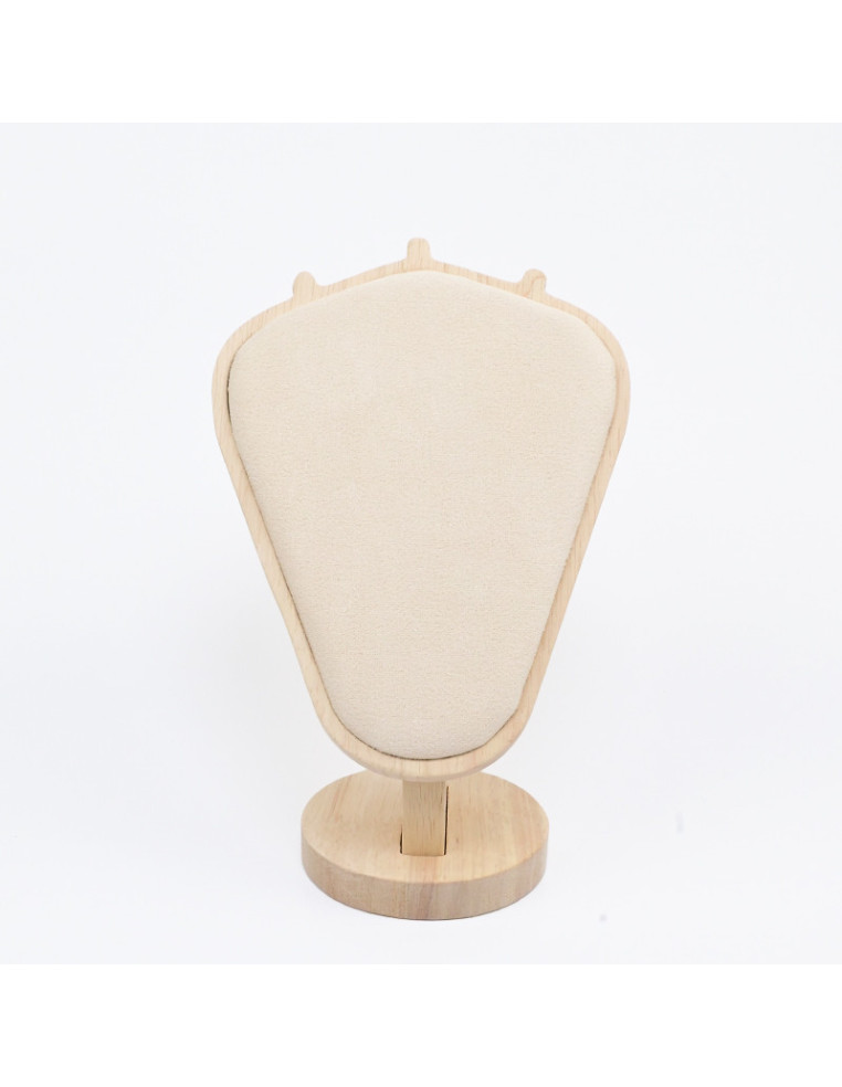 Exhibidor de collares chico forrado en tela, con base de madera.