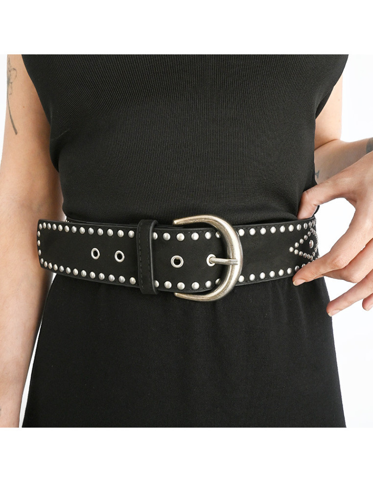 Cinturón faja de PU gamuzado con múltiples tachas.