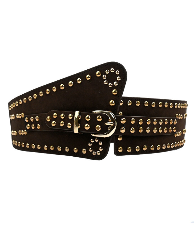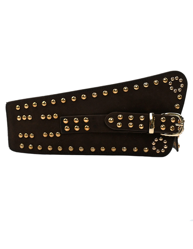 Cinturón faja con banda elástica de PU con múltiples tachas. Extensible hasta 120cm.