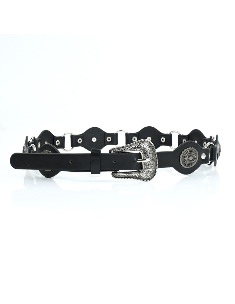 Cinturón Faja de Pu con hebilla. Argollas y apliques con diseño exclusivo.