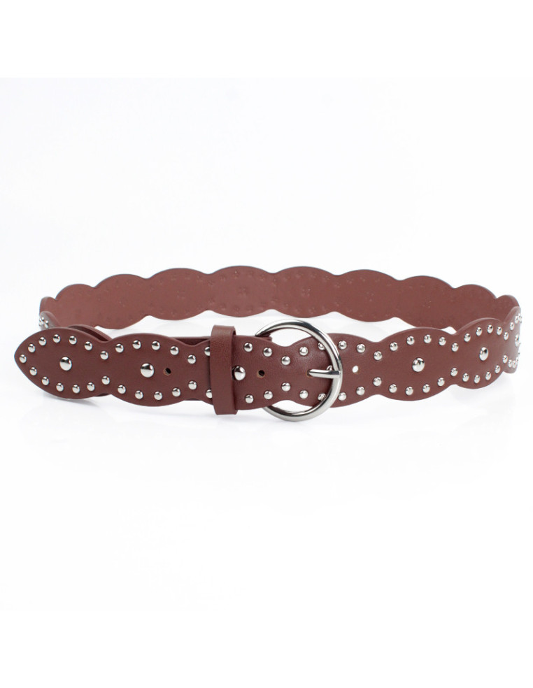 Cinturón faja circular de pu con múltiples tachas hebilla níquel.