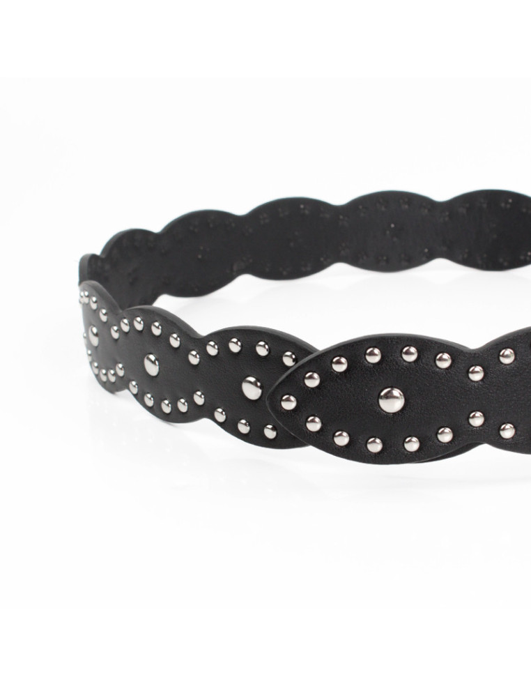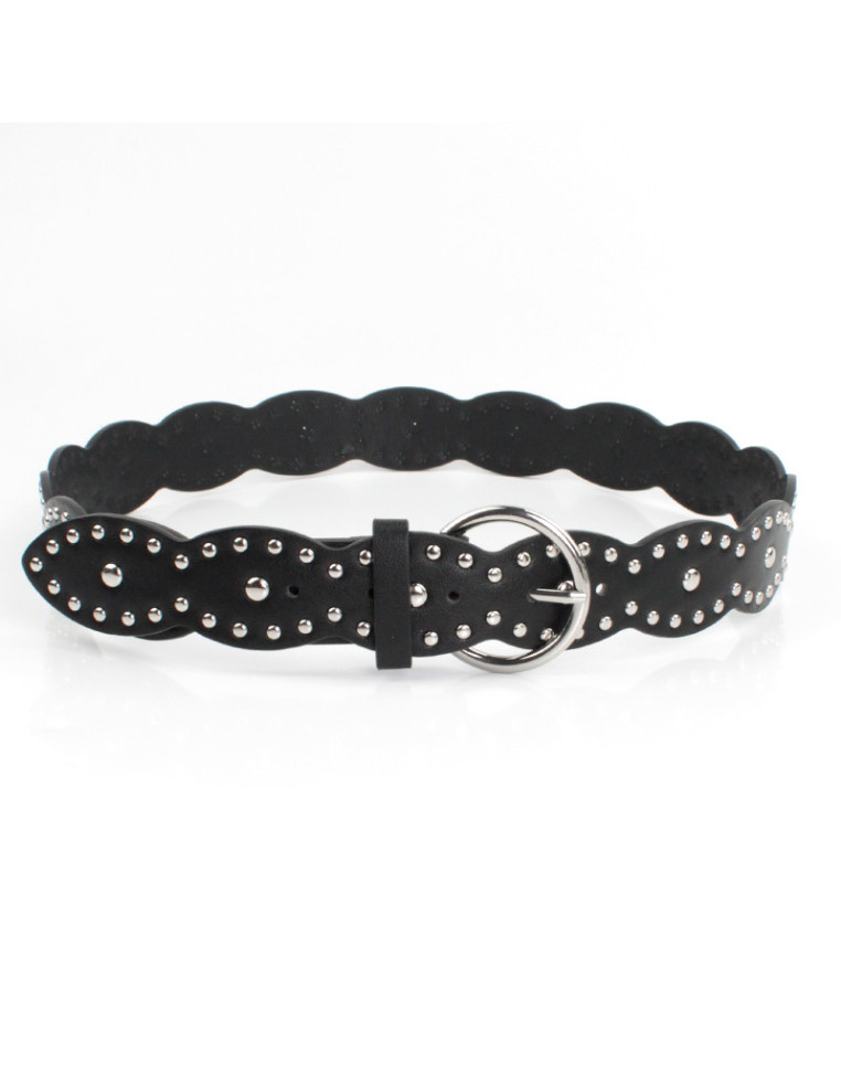 Cinturón faja circular de pu con múltiples tachas hebilla níquel.