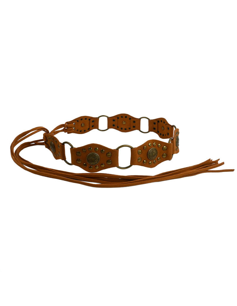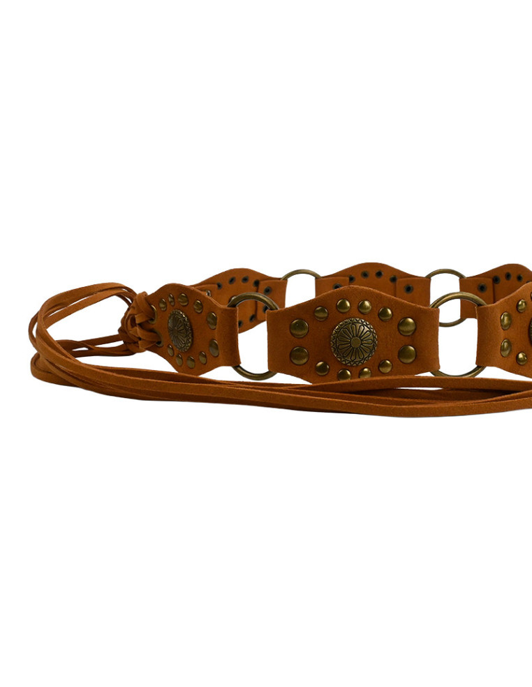 Cinturón Faja de gamuza. Argollas tachas con diseño exclusivo dorado.