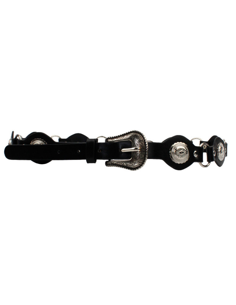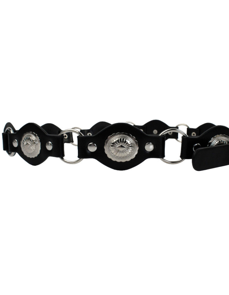 Cinturón Faja de Pu con hebilla. Argollas tachas con diseño exclusivo.Medida: 102 cm x 4cm.